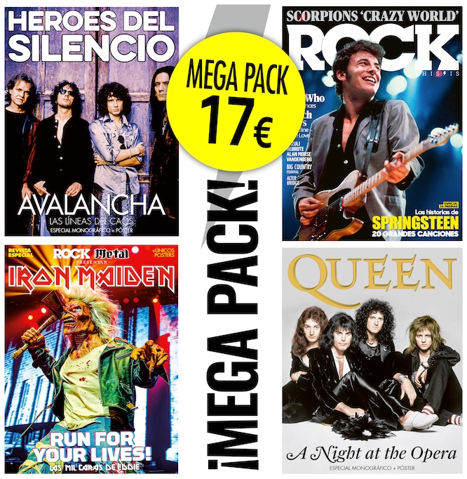 Mega Pack compuesto por el último número de This Is Rock, y los especiales de Queen, Iron Maiden y el especial de Héroes del Silencio de la red de venta. No es la versión limitada exclusiva de tusrevistas.es con sobrecubierta.